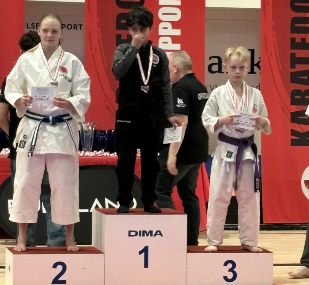 Arib lavede desværre en forkert bevægelse i første runde og røg ud. Uanset hvor meget man træner og forbereder sig, kan den slags ske, når nerverne tager over. Men Arib var også tilmeldt kata for 12-15-årige, og denne gang kæmpede han sig hele vejen til finalen, hvor han endte med en guldmedalje om halsen.