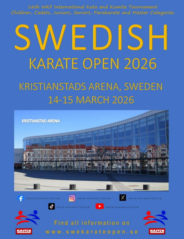 « Alle Begivenheder Swedish Karate Open 14. marts - 15. marts « 8. Shobu Ippon Tournament Generalforsamling » Stævneinformation: bulletin2026 + Google kalender+ iCal-eksport Detaljer Start: 14. marts Slut: 15. marts Begivenhed Kategori: Stævner Hjemmeside: https://www.swekarateopen.se/ Sted Kristianstad Arena Västra Storgatan 69 Kristianstad, 29154 Sweden + Google Maps